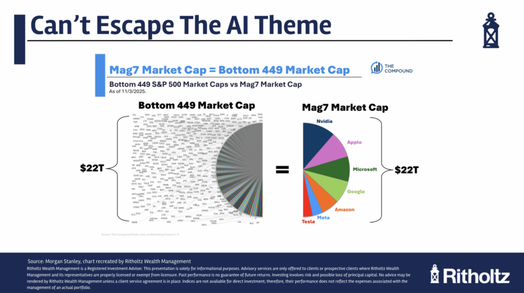 A to dlatego, że Apple i Nvidia są dziś warte niemal tyle, co całe sektory ochrony zdrowia i dóbr konsumpcyjnych podstawowych razem wzięte. Mało? To spójrzmy dalej: kapitalizacja rynkowa całej grupy Magnificent 7 jest już równa łącznej wartości sektorów energii, materiałów, dóbr konsumpcyjnych podstawowych, ochrony zdrowia, finansów, użyteczności publicznej oraz nieruchomości.