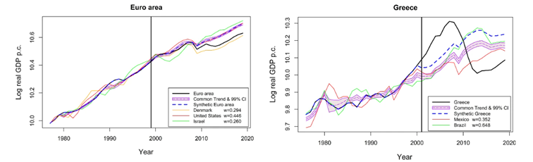 W tym przypadku Państwa z grupy kontrolnej, nieposiadające euro, rozwijały się szybciej kraje, które ją przyjęły. Różnice były jednak marginalne. Na przyjęciu wspólnej waluty najbardziej straciły dwa państwa. Mowa o Włochach i Grecji. W przeszłości te dwa państwa dewaluowały swoją własną walutę, aby utrzymać konkurencyjność gospodarki. Po przyjęciu euro nie było już to możliwe.