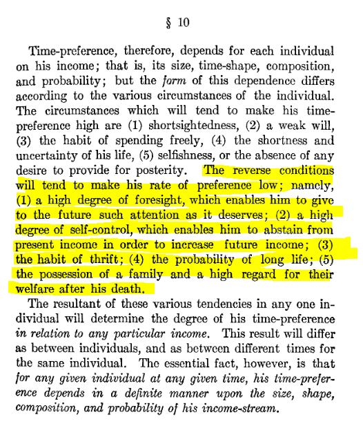 Dla mnie pierwszą, która zostawiła ślad w mentalnych mapach oszczędzania/inwestowania i którą polecam, była „The Rate of Interest” I. Fisher’a z 1907 r. Uniwersalizm preferencji czasu ujmuje do dziś, np. zestaw cech oczekiwanych od osób o niskiej preferencji czasowej tj. osób które są w stanie odkładać bieżącą konsumpcję na rzecz przyszłej (inwestycji).