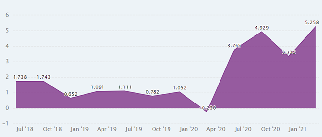 We wczesnej fazie ożywienia gospodarczego istnieje zwykle rozbieżność pomiędzy wzrostem PKB a innymi wskaźnikami ekonomicznymi, jak stopy procentowe, czy omawiana inflacja. Wskaźnik PKB uwzględnia wydatki, ale nie uwzględnia poniesionych w czasie kryzysu strat. Od stu lat na świecie nie było prawdziwej pandemii, co sprawia, że obecny kryzys należałoby jednak oceniać ciut inaczej, niż poprzednie. Jeśli mamy sytuację, w której już na początku ożywienia gospodarczego następuje wysoki wzrost inflacji, to następnie należałoby się spodziewać wyhamowania tego wzrostu. Przy wysokiej inflacji, ceny rosną szybciej niż płace, co zmniejsza siłę nabywczą konsumentów. Przy normalnych warunkach, gdy ceny rosną, to ludzie rozglądają się za importem tańszych produktów z zagranicy. Teraz o taki import dalej trudniej, ponieważ jak wspominałem, część łańcuchów logistycznych dalej w pełni nie funkcjonuje.