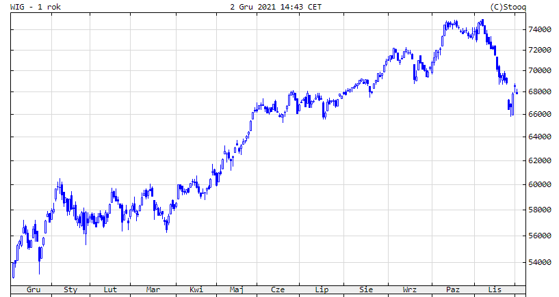 - Prognozę przegrzania rynku i końca istotnych rekordów na GPW w tym roku z 4 października 2021 (Na ten rok już wystarczy wzrostów na GPW). W tej samej serii odczytów prognozowaliśmy zasięg maksymalnej fali wzrostowej WIG w przedziale 73 500 – 75 600 punktów. Obie prognozy, jak na razie uznajemy za udane. No chyba że WIG w grudniu zanotuje ponad 12% wzrosty, ale nic na to nie wskazuje.