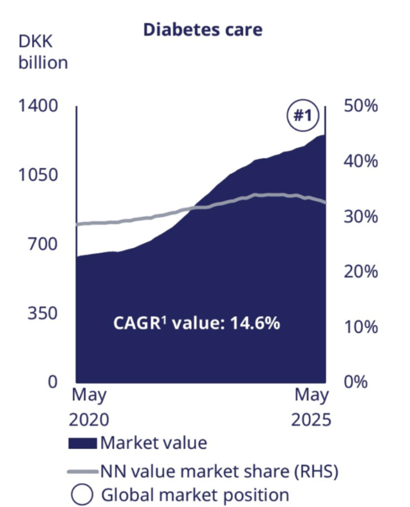 Jednocześnie to Novo pomimo spadków udziałów w rynku GLP-1 pozostaje… liderem w tych udziałach. Tak, udział w rynku spada. To normalne na każdym rynku, który nie może być monopolem, ale jednocześnie rynek mocno rośnie. Novo i tak zarabia na GLP-1 więcej niż kiedykolwiek wcześniej,