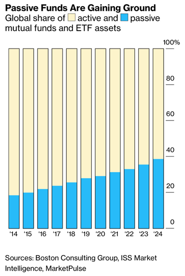 A na sam koniec słówko o ETF-ach ogółem. Od lat obserwujemy przesuwanie się ciężaru inwestycji z funduszy aktywnie zarządzanych w stronę pasywnych. Dane Boston Consulting Group pokazują, że globalny udział aktywów ulokowanych w funduszach pasywnych i ETF-ach konsekwentnie rósł w ostatniej dekadzie – w 2014 roku stanowiły one niespełna 20% rynku, dziś to już blisko 40%. Inwestorzy na całym świecie docenili prostotę, niskie koszty i przewidywalność strategii polegających na odwzorowywaniu indeksów. W efekcie powstało określenie „pasywna rewolucja”, która zmieniła sposób, w jaki przeciętny Kowalski czy Smith buduje swoje portfolio.