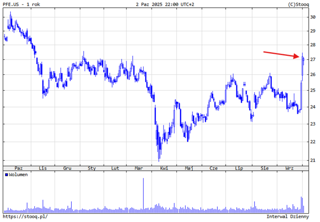 Reakcja rynku była więc natychmiastowa. Akcje Pfizera w dwie sesje wzrosły o 15%, a analitycy JPMorgan nazwali umowę potencjalnym „kamieniem milowym” dla całej branży.