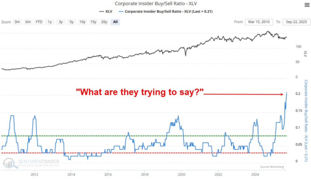 Widać to także w danych o insiderach. Wykres pokazuje, że zakupy akcji przez osoby z zarządów firm farmaceutycznych wystrzeliły w kosmos. To sygnał, że sami ludzie z branży czują, iż najgorsze jest już za nimi i korekta w sektorze dobiega końca.