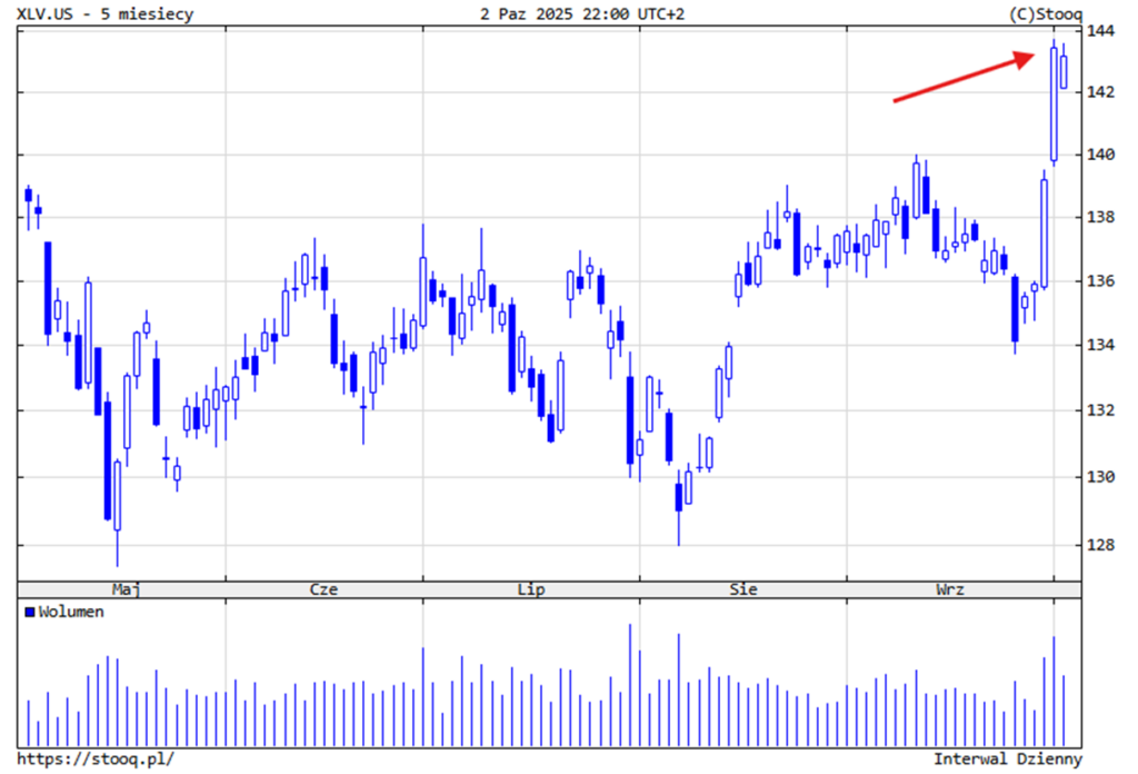 Inwestorzy odebrali deal jako sygnał, że cały sektor leków może odetchnąć. Skoro Trump znalazł formułę porozumienia z największym graczem, to pozostali producenci prawdopodobnie dogadają się na podobnych warunkach. Prezydent zresztą sam zaznaczył, że podobne umowy zostaną zawarte z innymi producentami. W efekcie indeks sektora ochrony zdrowia XLV podskoczył o 6% w dwie sesje, zdejmując część obaw o cła na farmaceutyki, które od miesięcy ciążyły na wycenach.